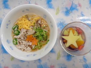 7日の給食は『七夕そうめん・きらきらフルーツポンチ』でした🎋