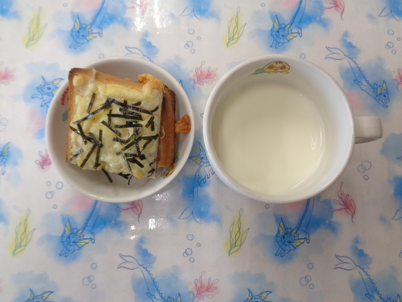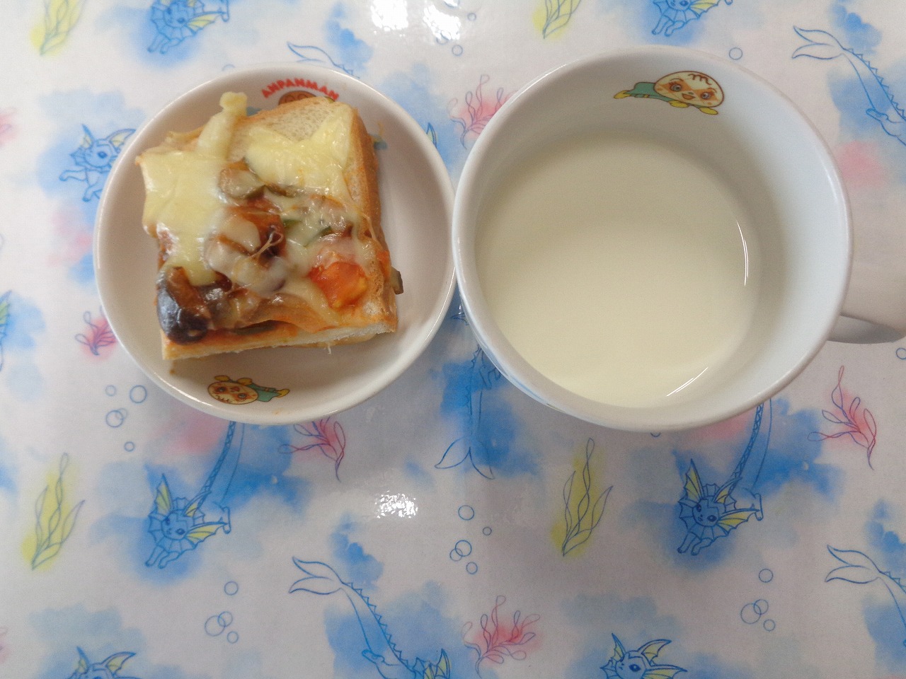 おやつは『夏野菜ピザトースト・牛乳』でした🍕