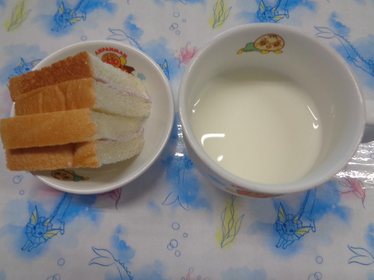 おやつは『ブルーベリーホイップサンド・牛乳』でした