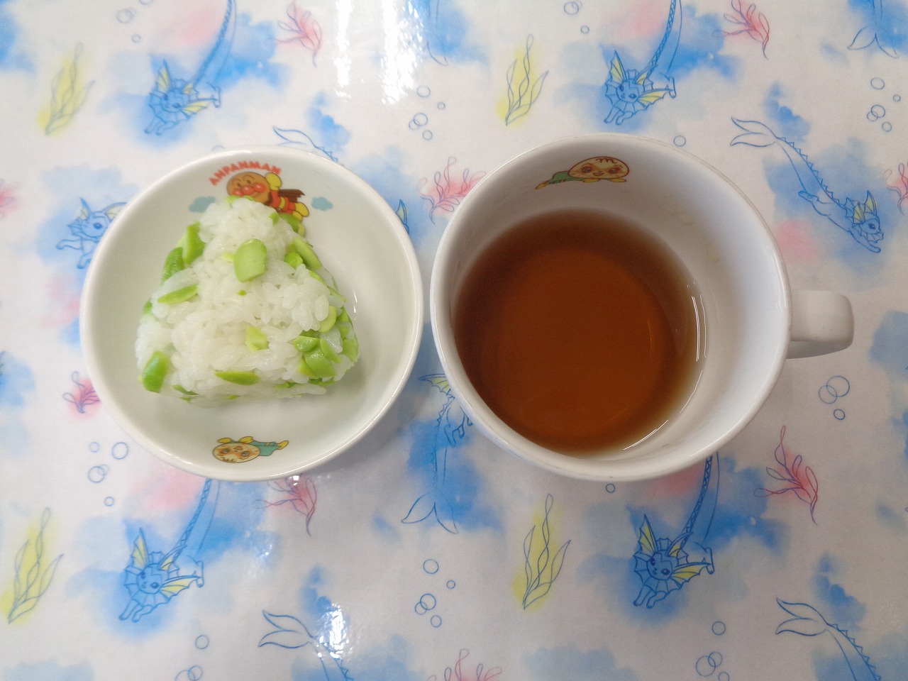 おやつは『枝豆おにぎり・麦茶』でした🫛