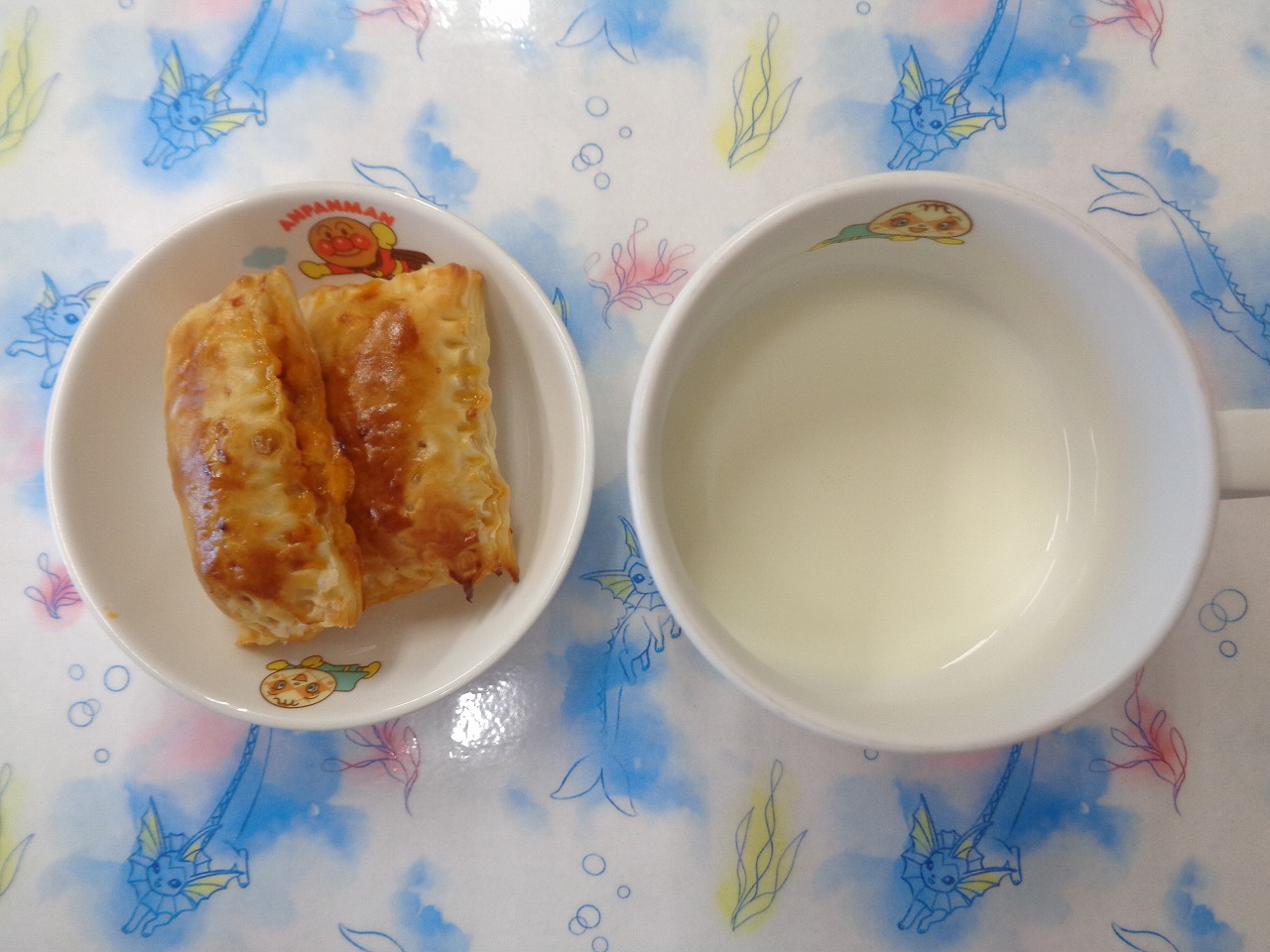 おやつは『トマトミートパイ・牛乳』でした🍅