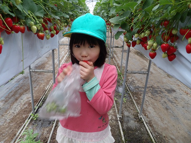 真っ赤に実ったたくさんのいちごに満面の笑みで口に運んでいましたよ