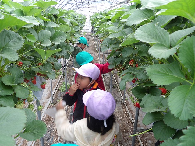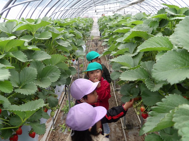 5月11日(水)年中児、年長児でいちご狩りに行ってきました