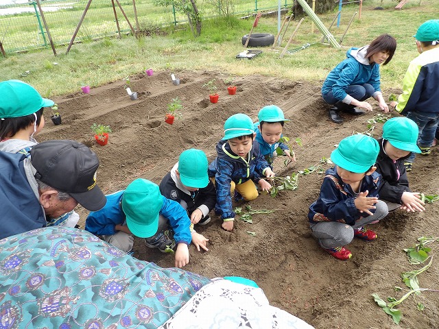 ばらさんはさつまいもにきゅうり、とまと、ナス、ピーマン、人参に大根…いろんな野菜を植えました