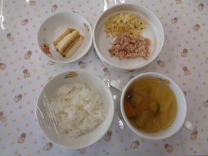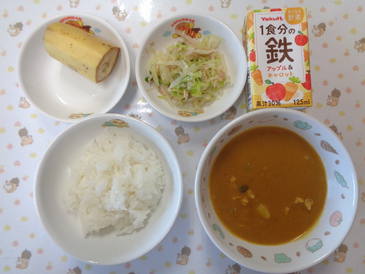 12日の給食は『秋のカレー・ツナサラダ・野菜ジュース・バナナでした🍛』