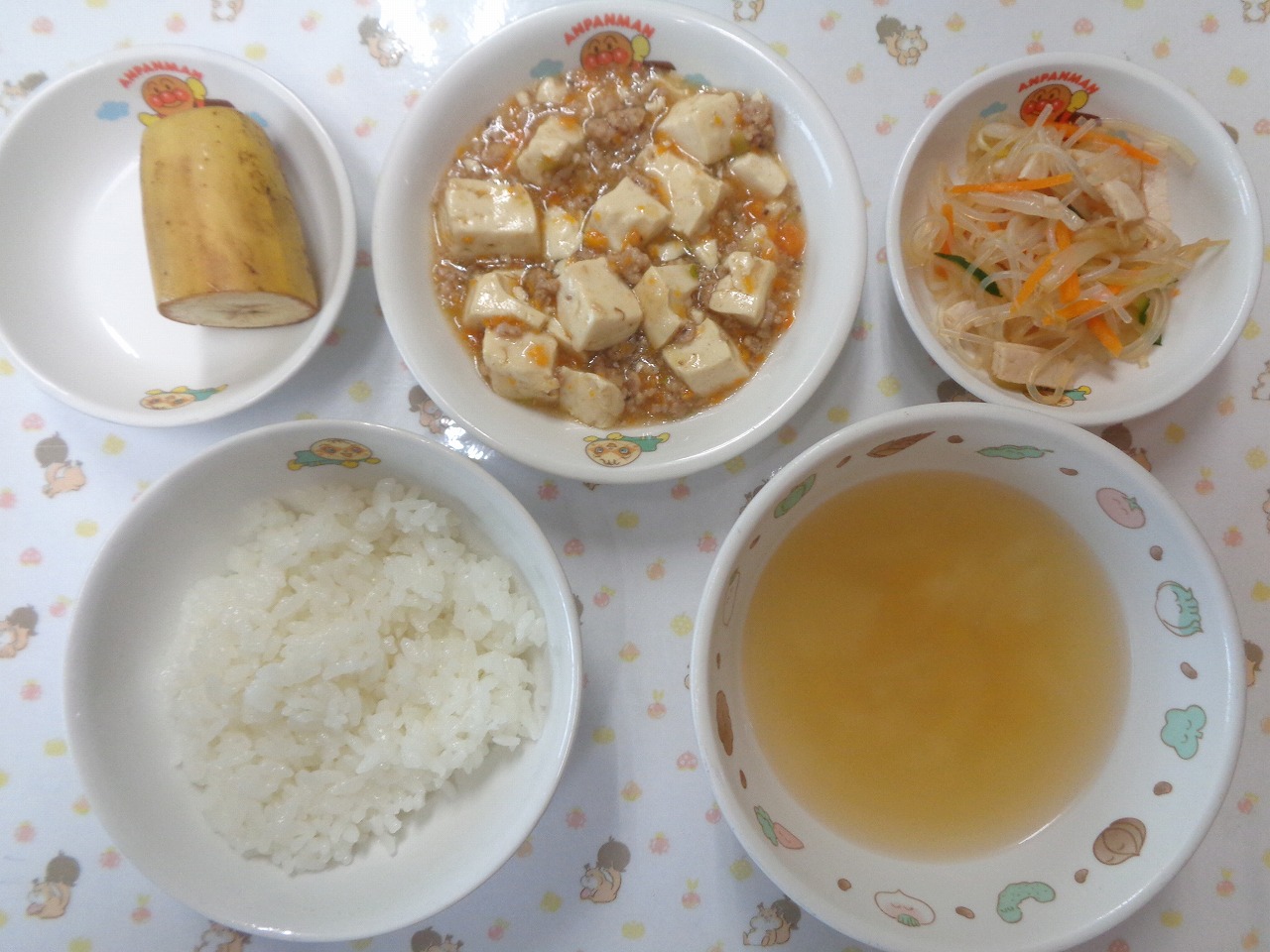 5日の給食は『麻婆豆腐・春雨サラダ・中華スープ・バナナ』でした!