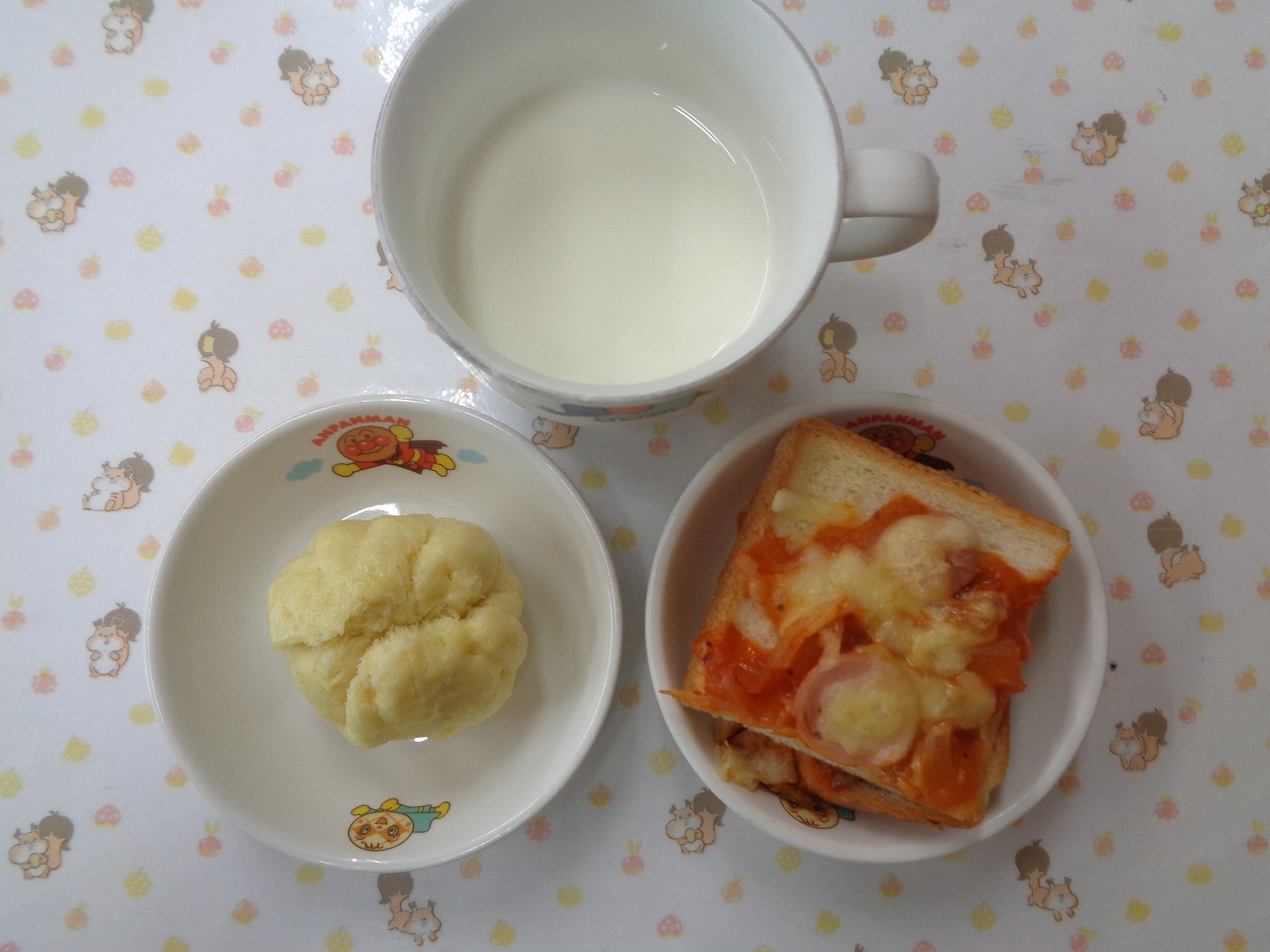おやつは『肉まんorピザトースト・牛乳』でしたうれしい顔