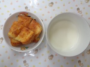 おやつは『豆乳フレンチトースト・牛乳』でした🍞