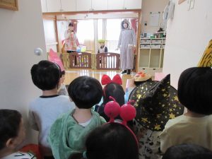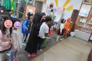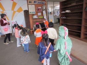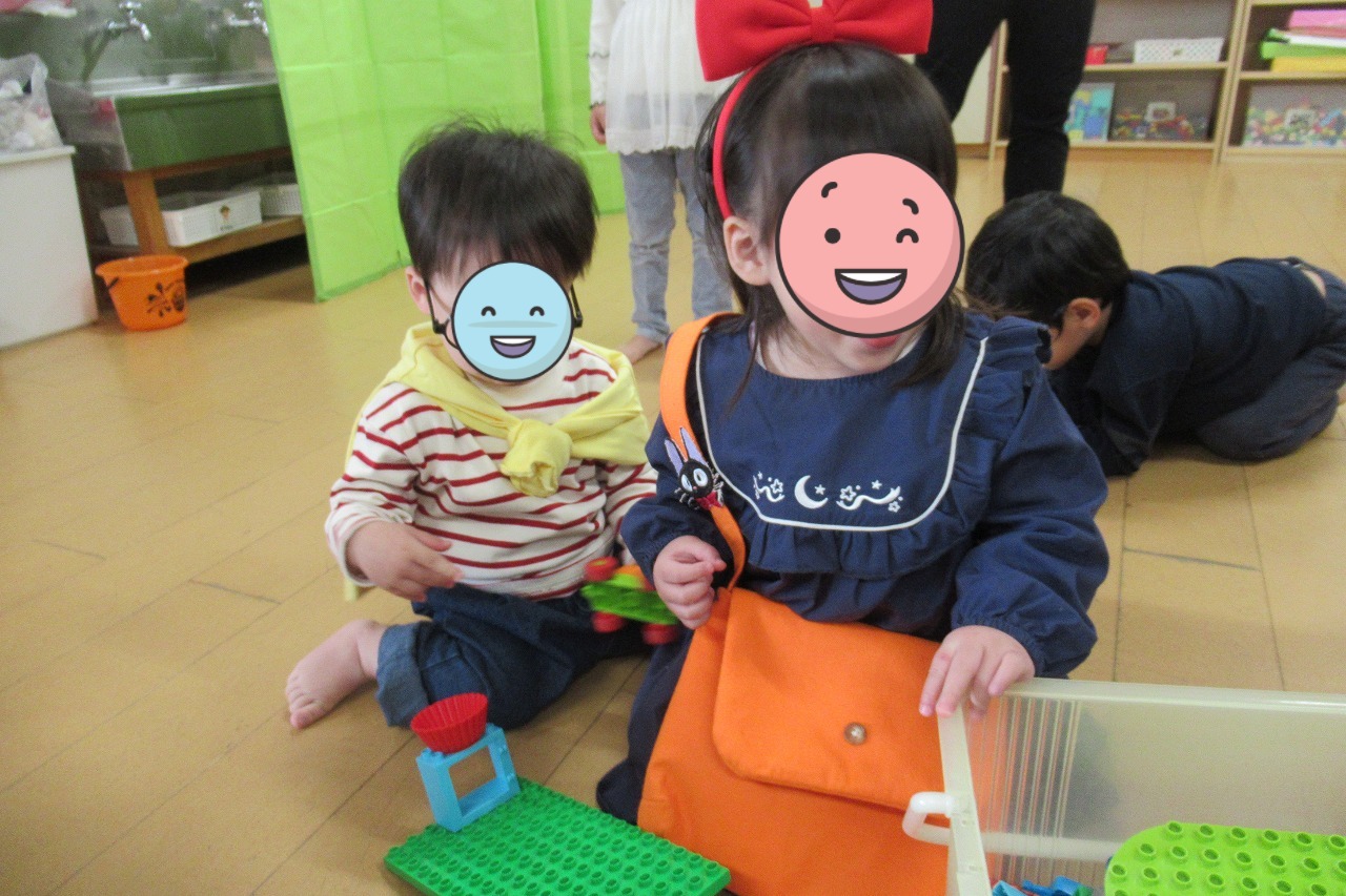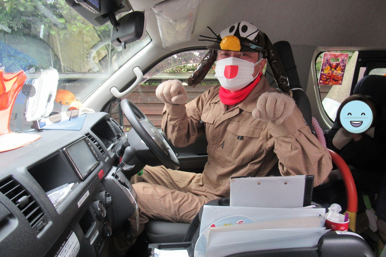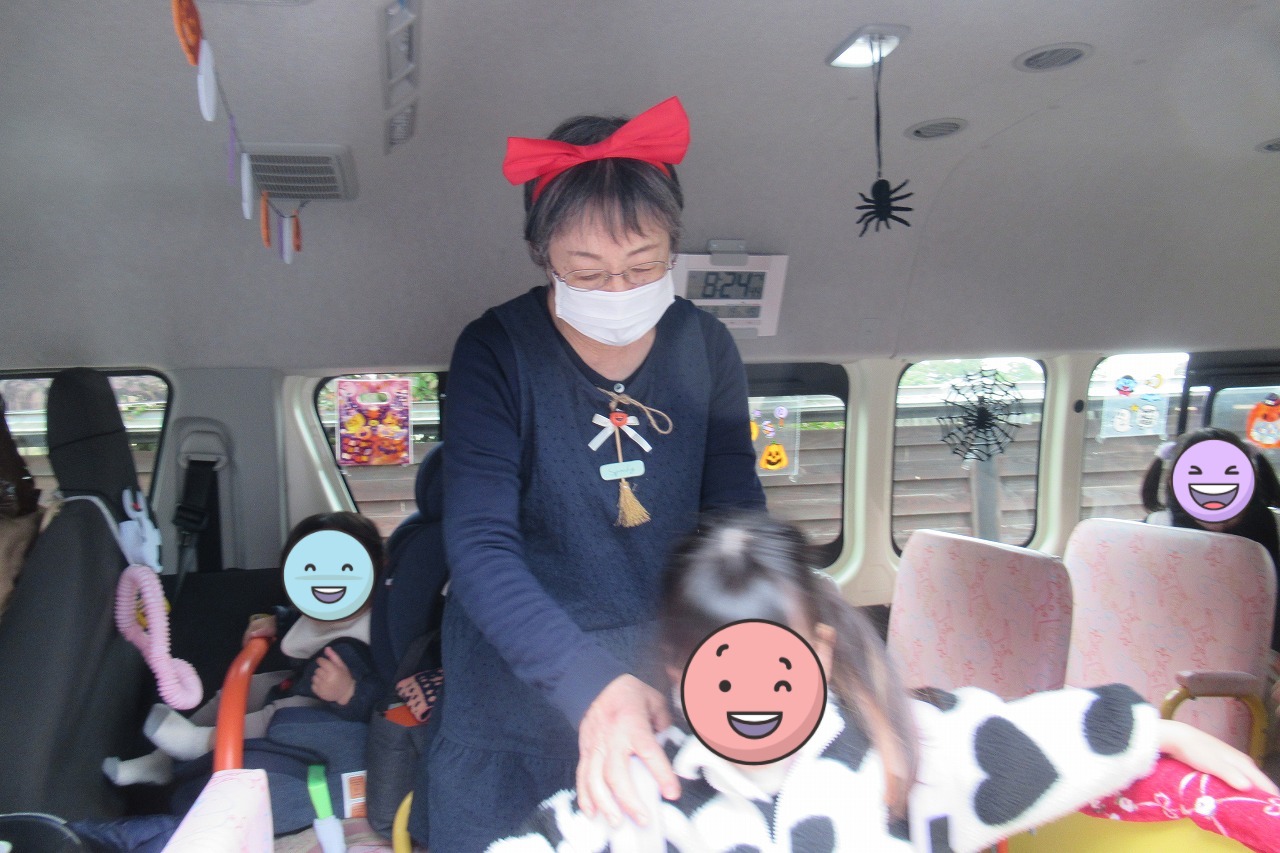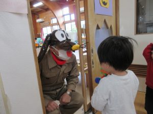 運転を終えたわんわんが保育園の中にも遊びに来たよ🐶