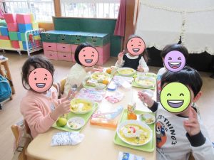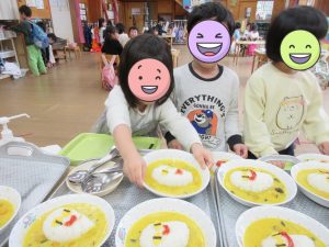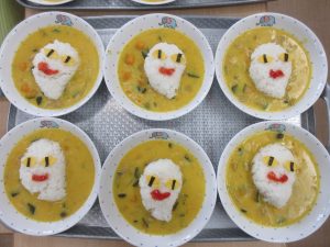 そして、今日の給食は可愛いおばけのシチューライス👻