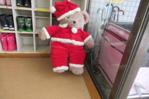 可愛いサンタくまさんが、玄関でみんなをお出迎え🏠