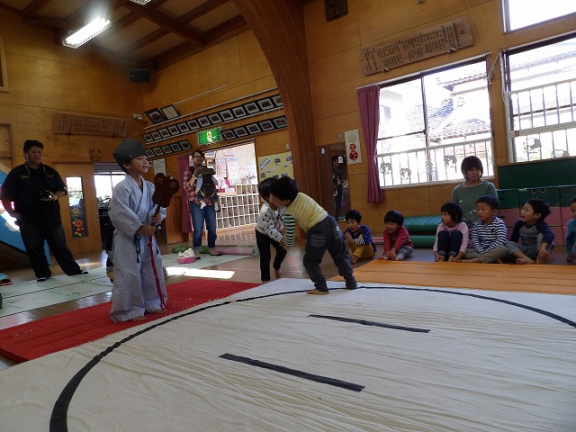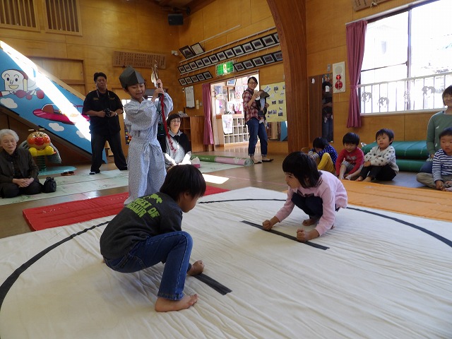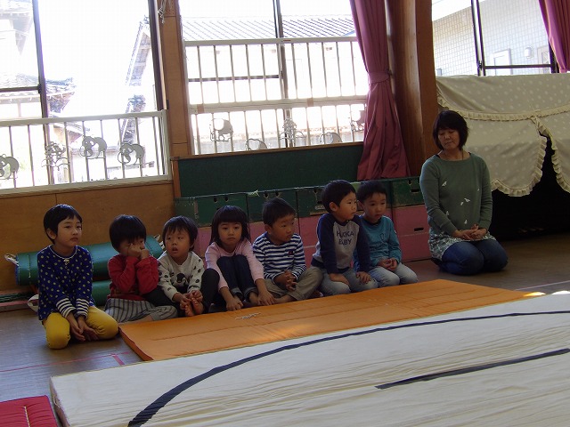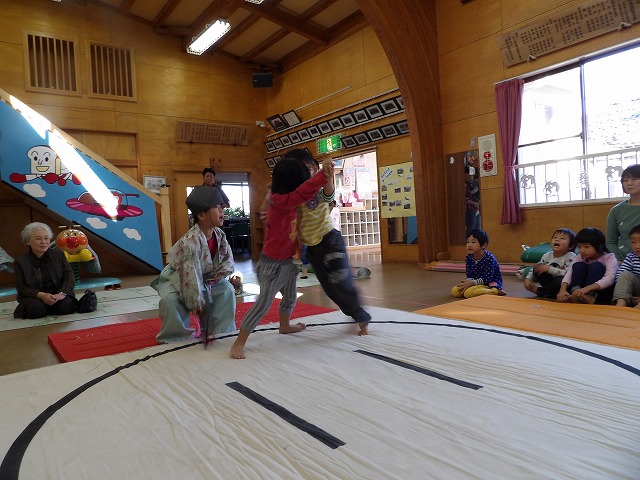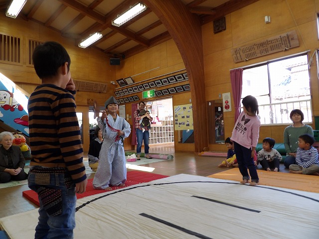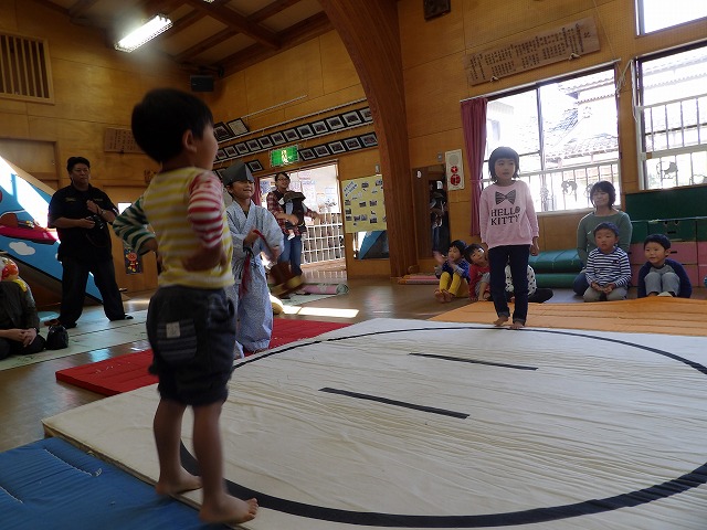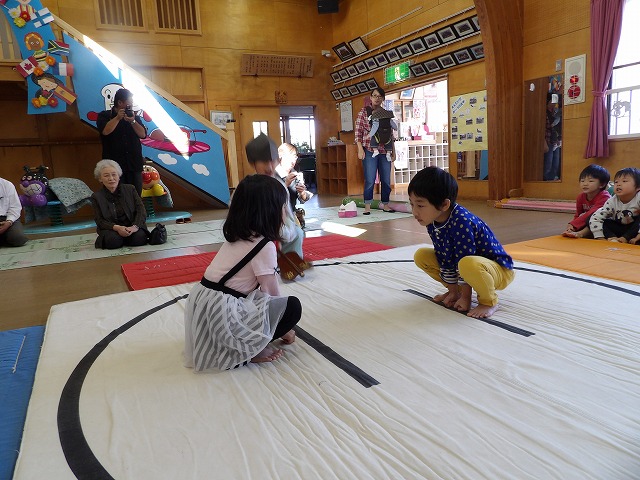 今回は年長児が呼び出しと行司を担います