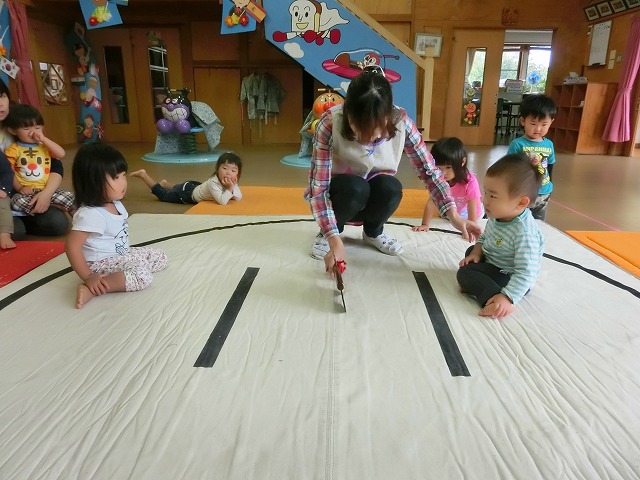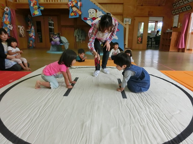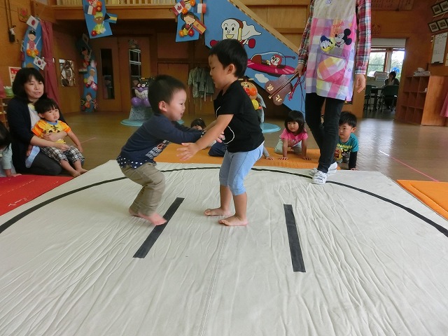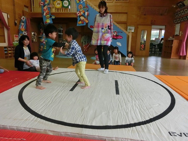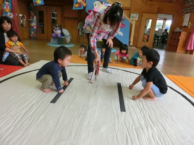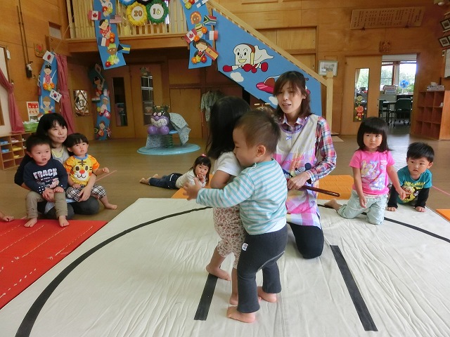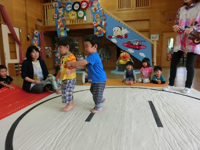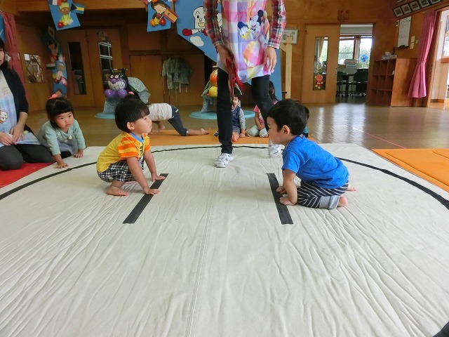 以上児のすもうに憧れの眼差しをしていたちゅうりっぷさん