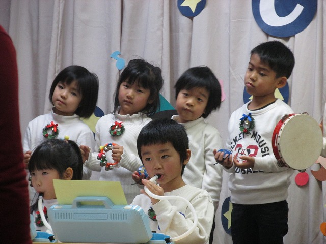 そして、最後は5歳児のハンドベル『We wish You a Merry Christmas』&合奏『あわてんぼうのサンタクロース』